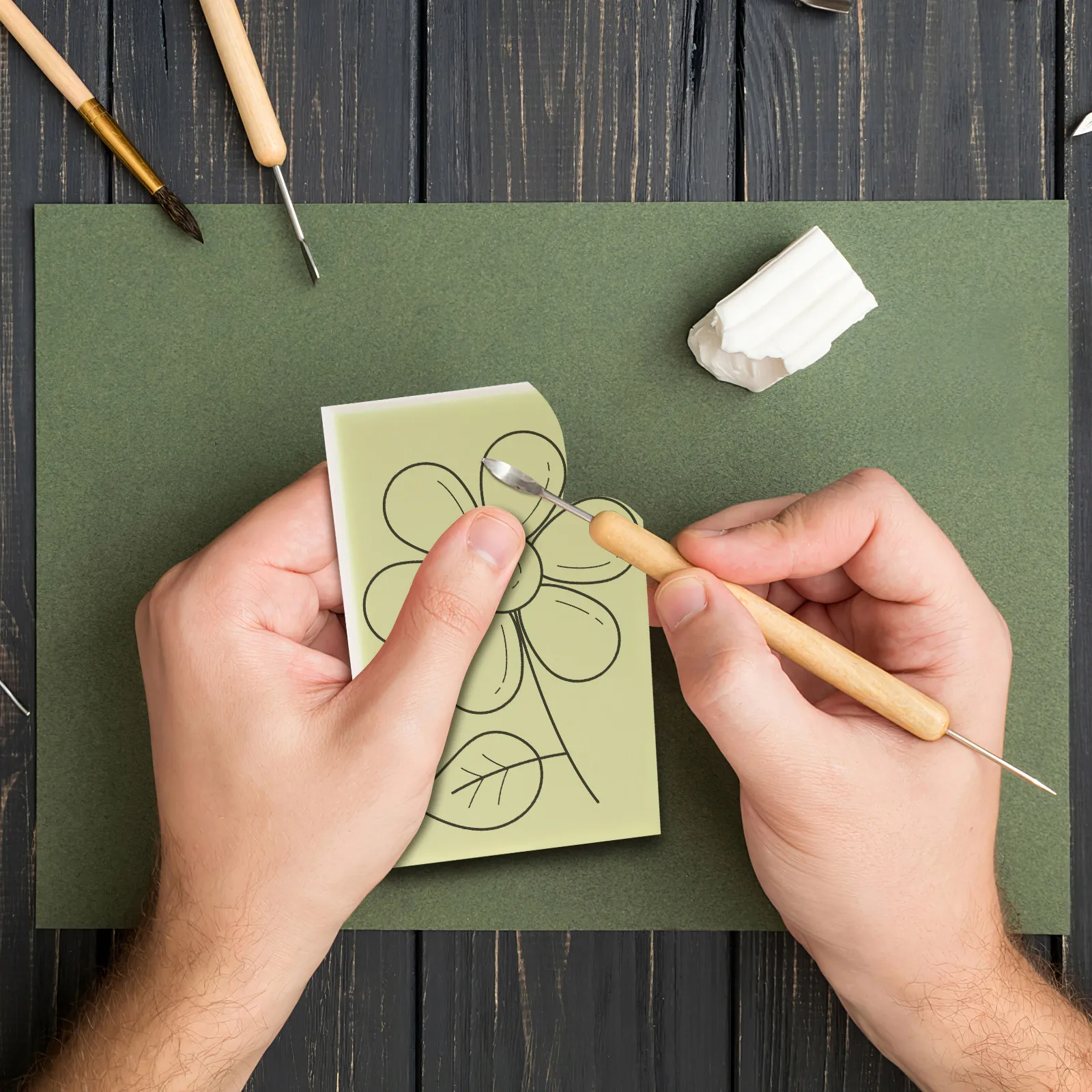 4Pcs Rubber Linocut Blocks Durable High Precision for DIY Craft Art Projects Easy to Cut Hand Carving Rubber Materials