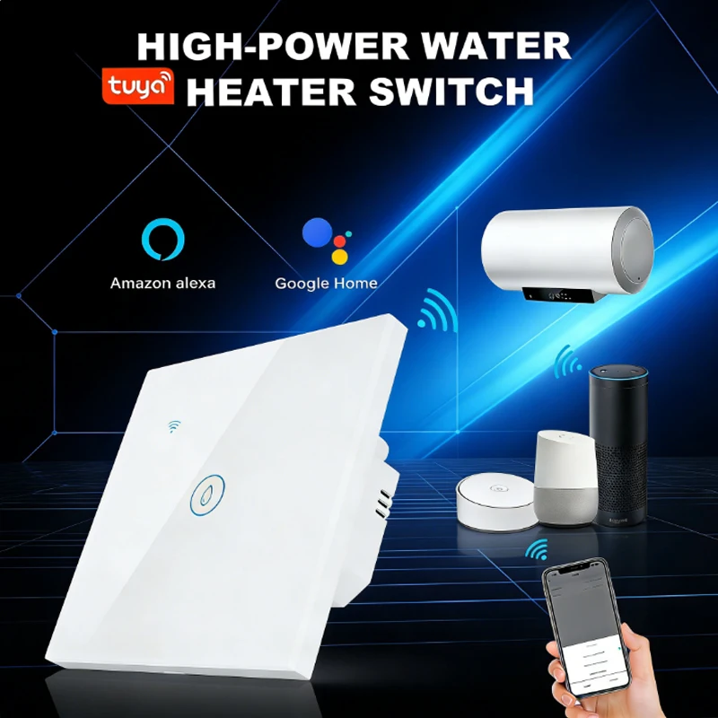 40A Tuya Wifi Smart Water Heater Boiler Switch 8000W Smart Life App Remote Control Energy Monitoring Voice Control Supports Google Home and Amazon Alexa