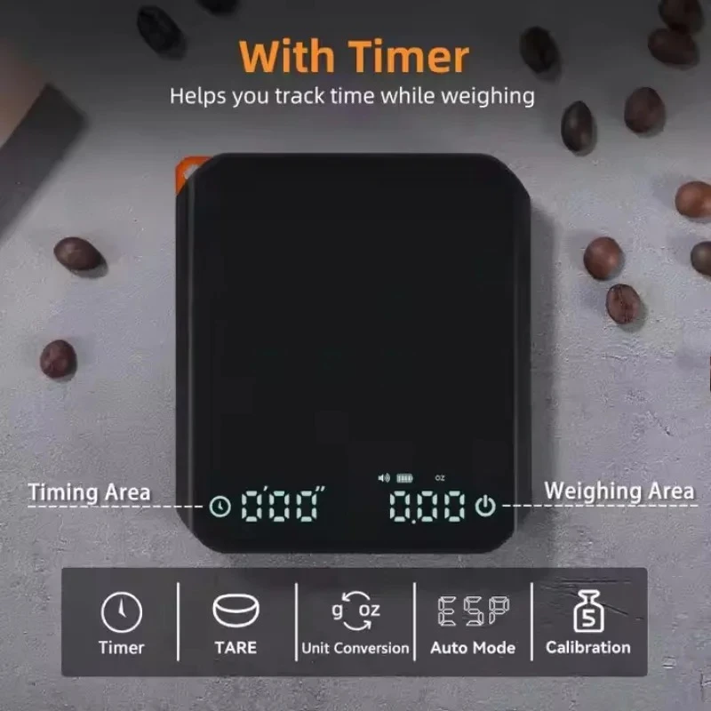 Bincoo Professional Coffee Scale Mini Smart Timer 2kg/0.1g g/oz/ml High Precision Digital Weight Kitchen Scale Home Barista Tool