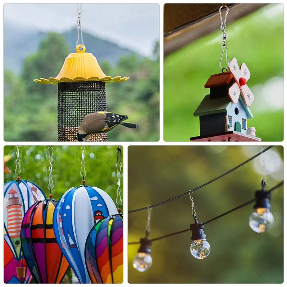 10Pcs Heavy Duty Rotatable Windsock Clips Dual Swivel Hooks Stainless Steel for Bird Feeders Wind Chimes Flower Pots Party