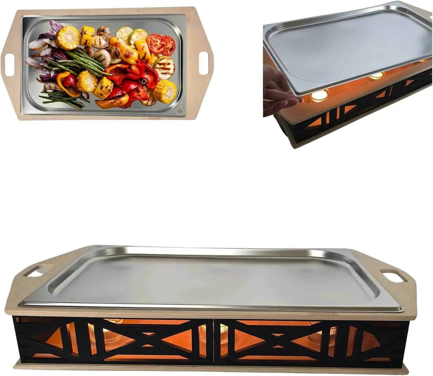 BBQ-Boards HeatBoard – podgrzewacz do potraw na wieczory przy grillu | płyta do serwowania BBQ z nakładką ze stali nierdzewnej i