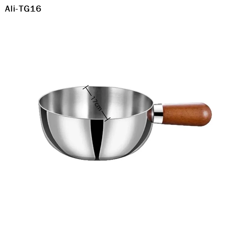 【TG16】1Pc 2025 Stainless Steel Small Cooking Pan Cookware Kitchen Tool 14CM/17CM Wooden Handle Breakfast Cooker Kitchen Tool