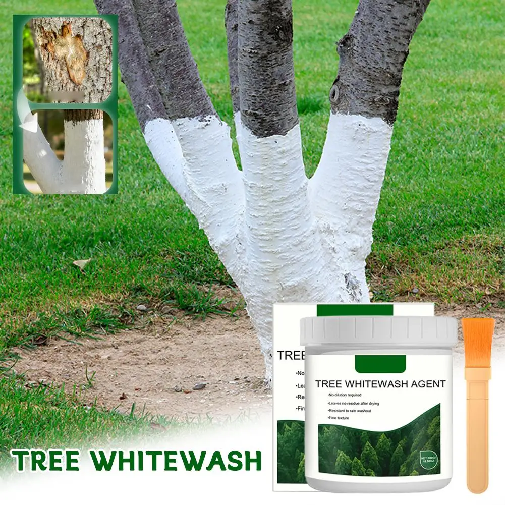 300g Professional Tree Whitewash Agent Protective Trunk Coating For Frost Sunburn Protection Anti-Insect Tree Paint With Brush