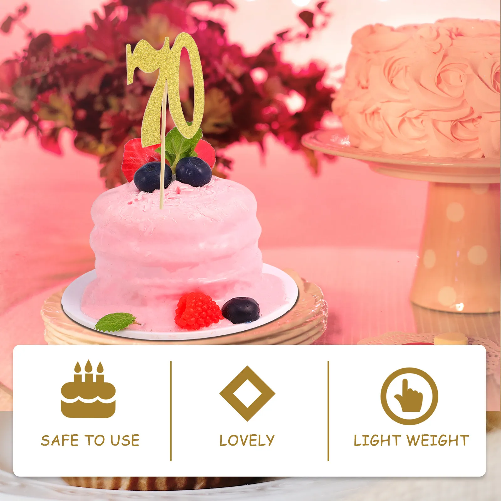 10Pcs Number 70 Cake Stick Pick Topper Glitter Paper Gold Birthday Party Cupcake Decoration Number Cake Decor Celebration