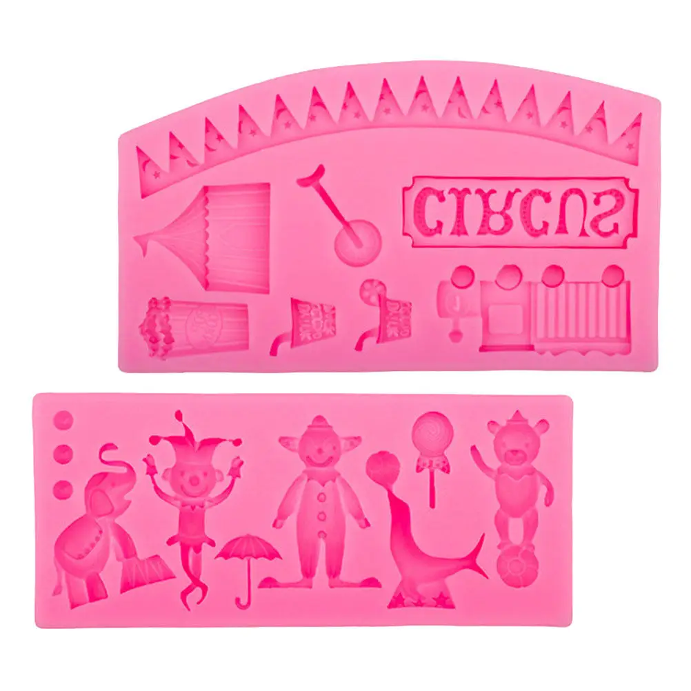 2Pcs Circus Shape Silicone Fondant Mold Cartoon Animal Cake Decorating Mold for Birthday Party Wedding Baking Candy Chocolate