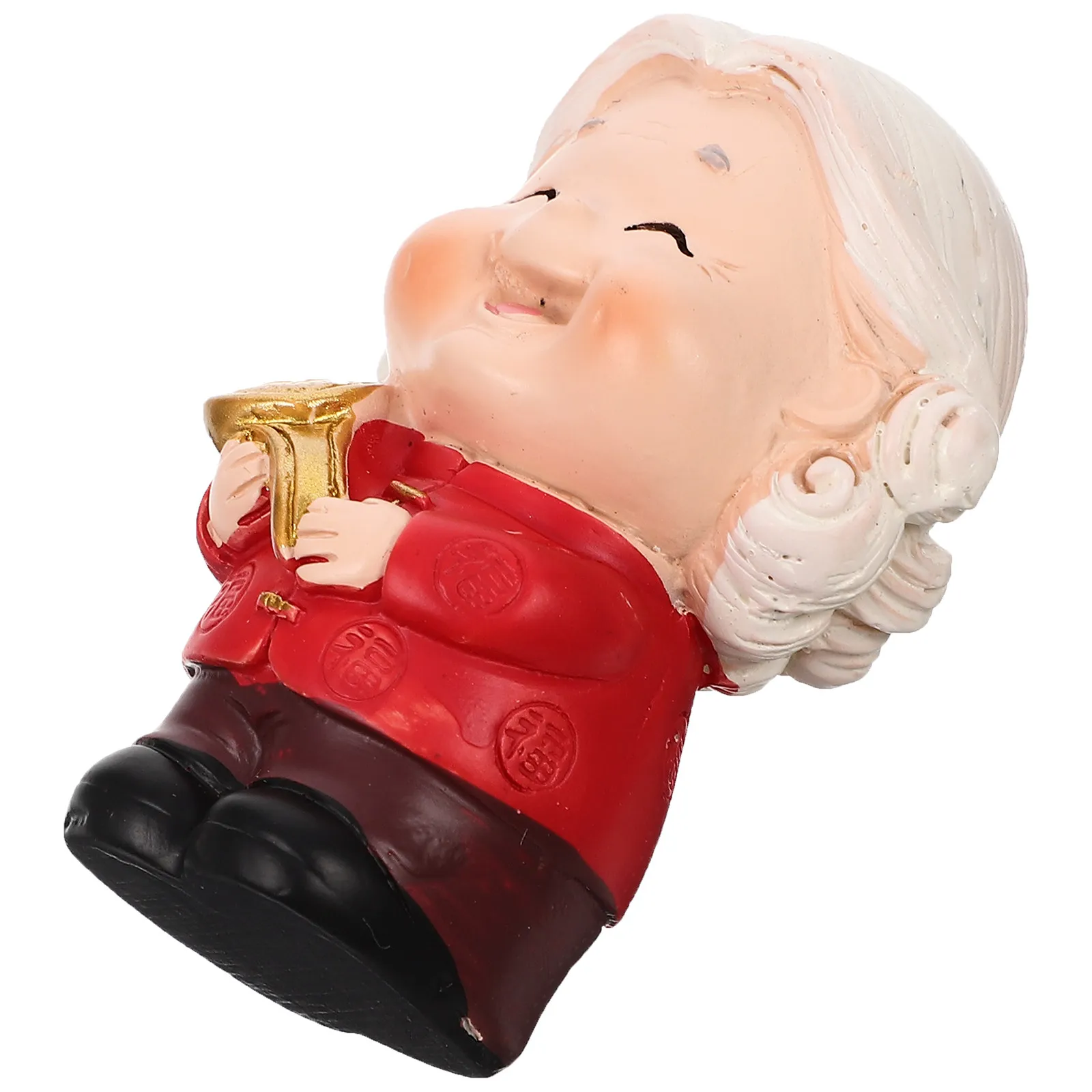 Chinese Elder Figure Cake Decoration Resin Statuette for Holiday Party Tabletop Decor Small Flower Pot Mini Scene Craft