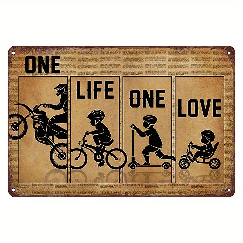 Vintage Metal Tin Sign "One Life One Love" - Garage Man Cave Wall Decor, Easy Install Gift for Cyclists