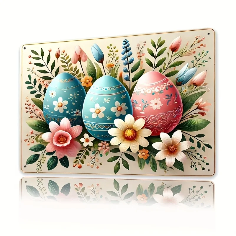[2D Flat] 1pc 8x12 Inch Festive Easter Egg Metal Wall Art Sign - Colorful Floral Design with Pastel Eggs, Ideal for Kitchen