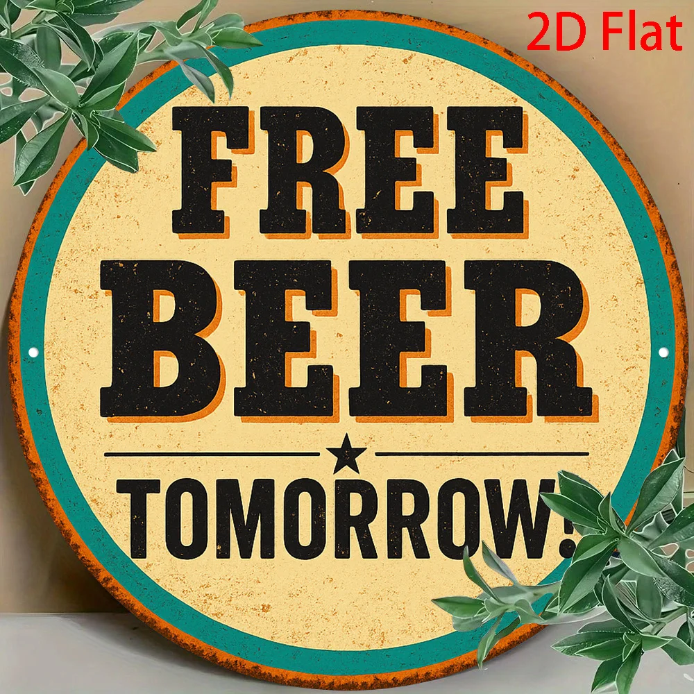 2D Flat, 1pc Vintage "Free Beer Tomorrow" Aluminum Wall Sign - Beer Logo Decoration Suitable for Bars, Offices, for Caves - Fun