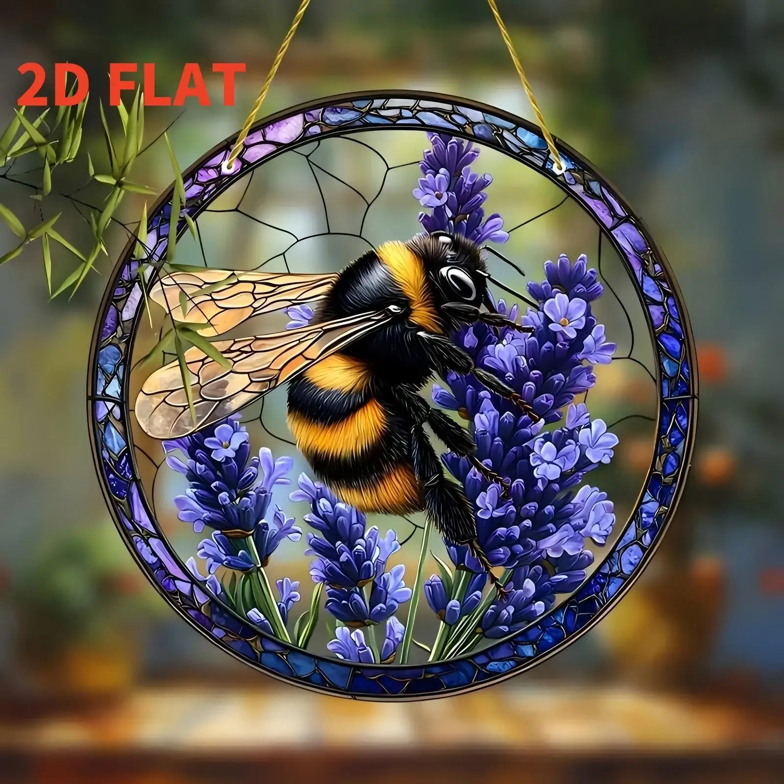 2D Flat - 2D FLAT New Purple Lavender And Bee Colored Round Pendant, 8inch×8inch Acrylic Garden Suncatcher, 2D Flat Design, Perf