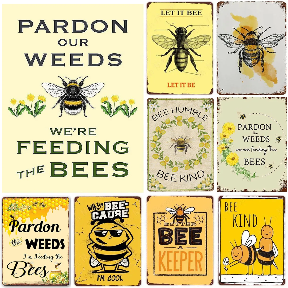 Vintage "Let It Bee" Pun Metal Tin Sign - Retro Bee Anatomy Wall Decor for Garden & Home