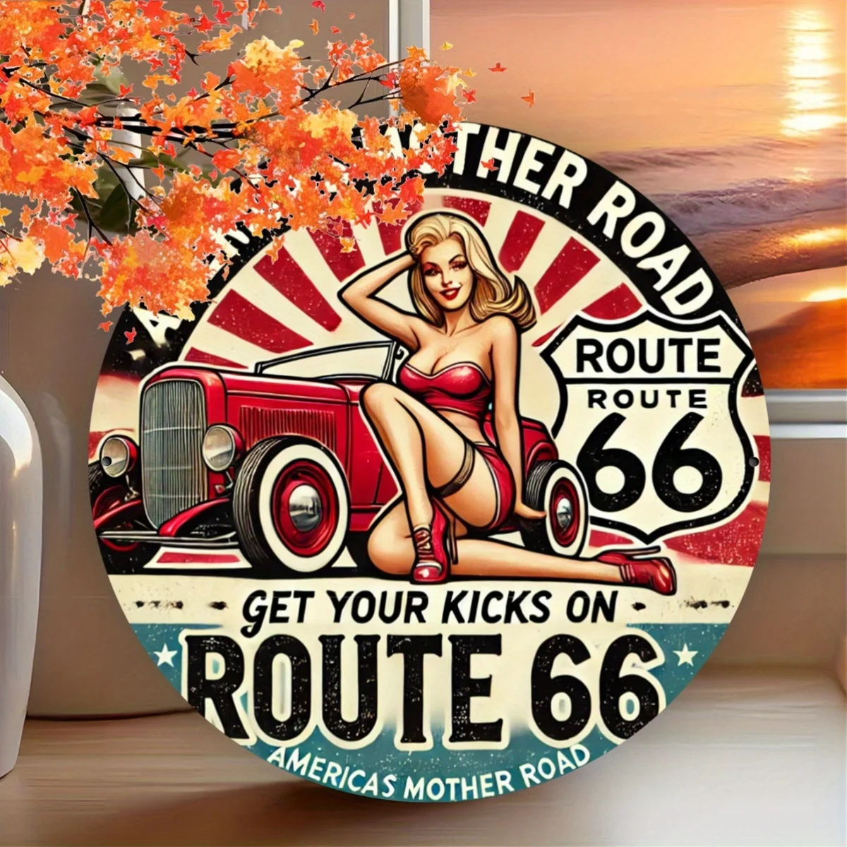 1PC Vintage Route 66 Iron Sign Plaque, America's Mother Road Themed Retro Poster, Fun Wall Decor for Garage, Patio, Cafe, Bar