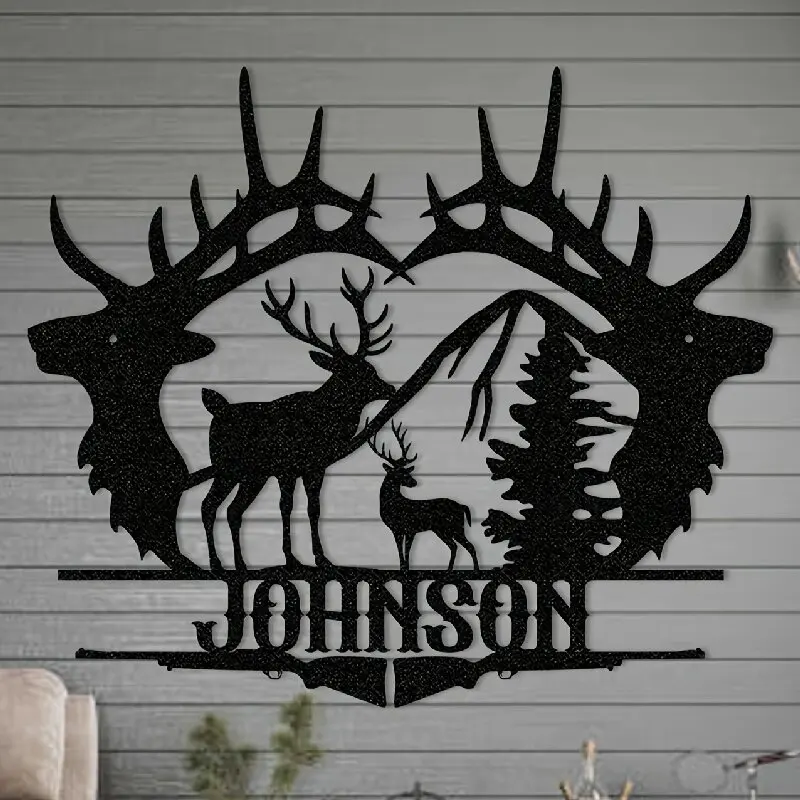 Customizable Elk Silhouette Metal Wall Art Sign, Presents for Outdoor/Kitchen/Rooms/Easter/Father's Day Decorations, Scene Party