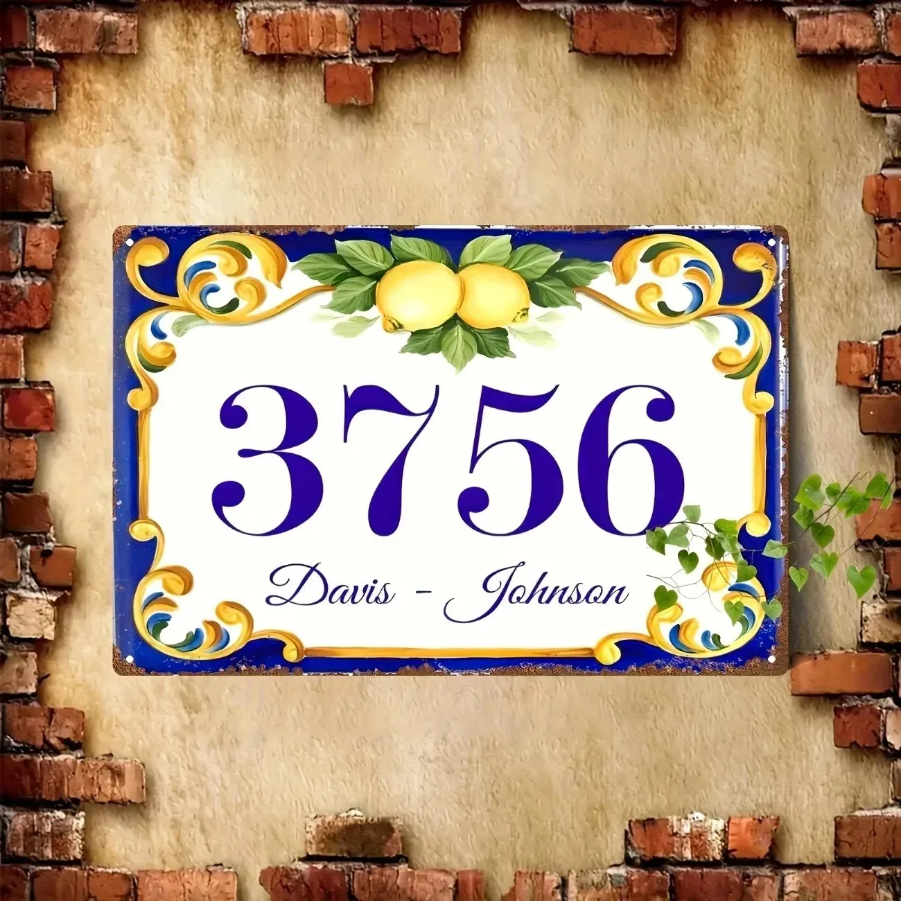 Personalized 2D Flat Retro Aluminum House Number Sign, Custom Street Name Plaque (8x12in) Green Vintage Decor for Indoor Outdoor