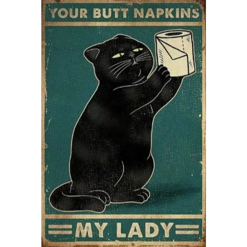 Black Funny Cat Metal Sign Vintage Plaque Metal Retro Animals Tin Poster For Living Room Home Decoration Wall Decor
