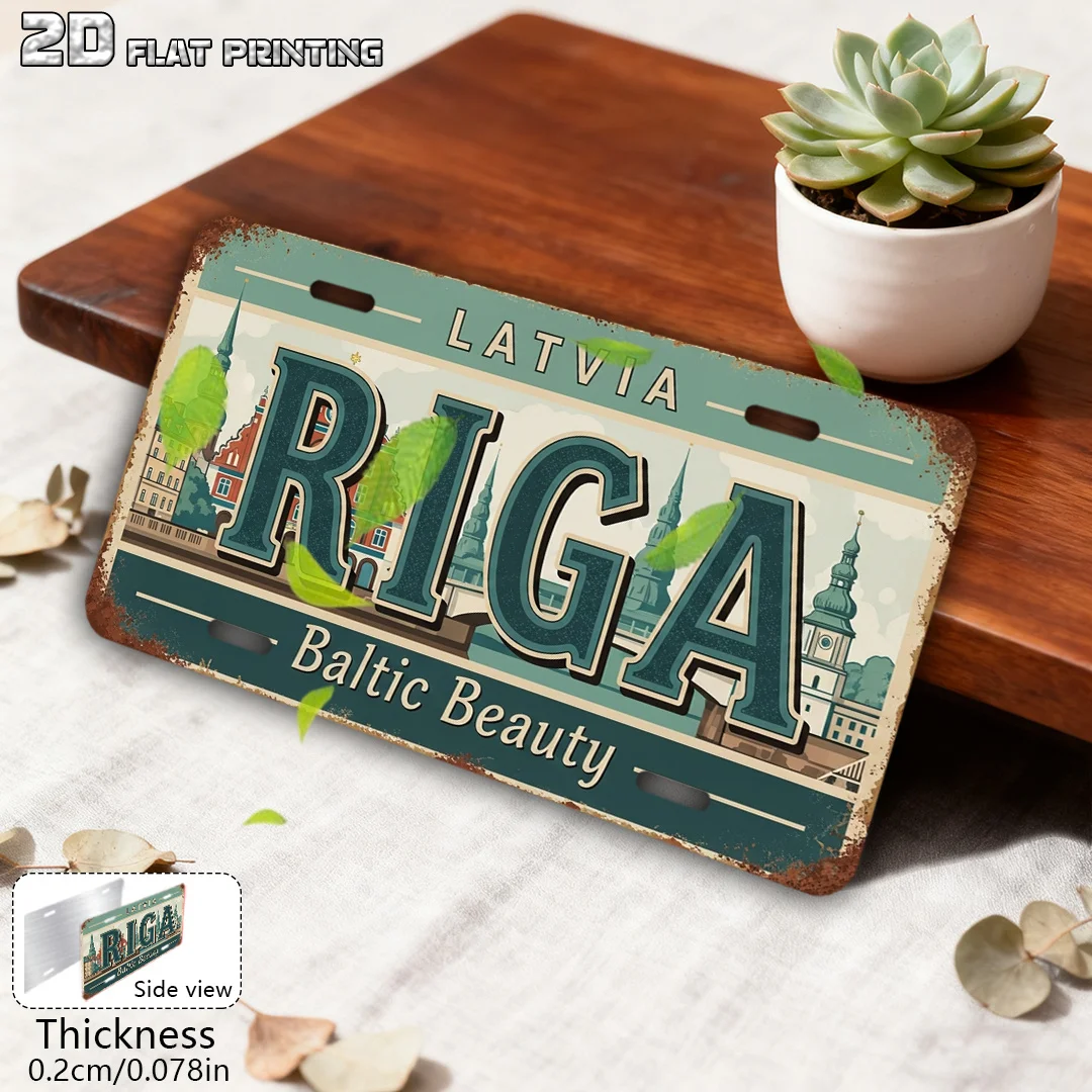 2D Flat, [2D Flat] 1pc Latvia Riga City Themed Vintage Metal Sign - 15.24cm x 30.48cm Large Retro Wall Plaque for /Outdoor Use S