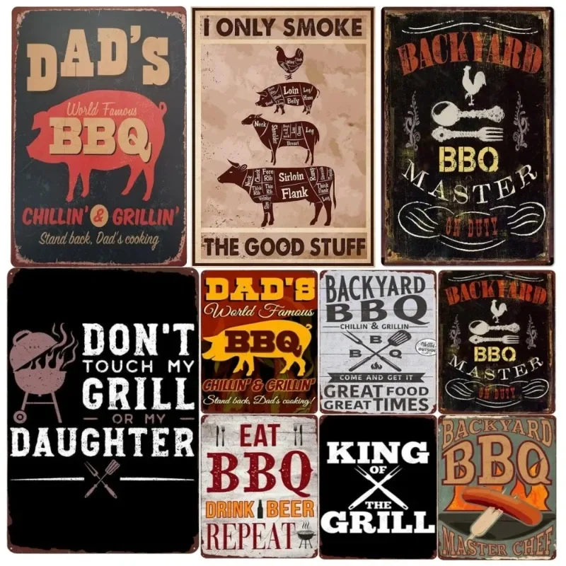 Backyard Dads BBQ Sign Vintage Grill King Metal Tin Sign Bar Pub Garden Decor Dad's BBQ Wall Plate Chillin&Grillin Retro Plaque