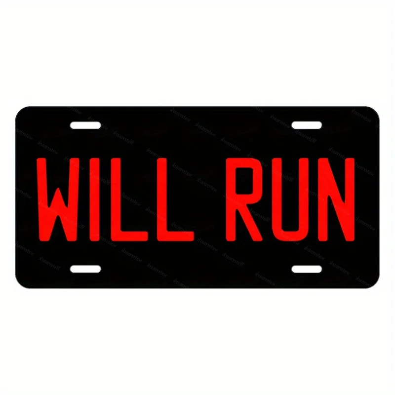 license plate sign marked "will run" 12x6inch Durable Retro Metal Wall Decor for Home, Office, Yard, Easy to Install No Power N
