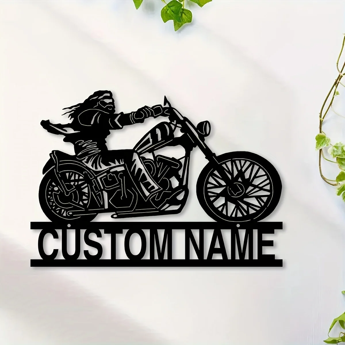 Customizable Motorcyclist Metal Wall Art Sign Decoration, Decor for Rooms/Porch/Patio, Gift for Easter/Mother's Day/Father's Day