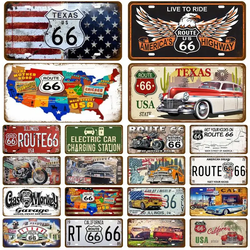 Route 66 Tinplates Plate Garage Car Retro Metal Sign Posters On The Wall Tin Sign Vintage Poster Home Decor Art Room Decoration