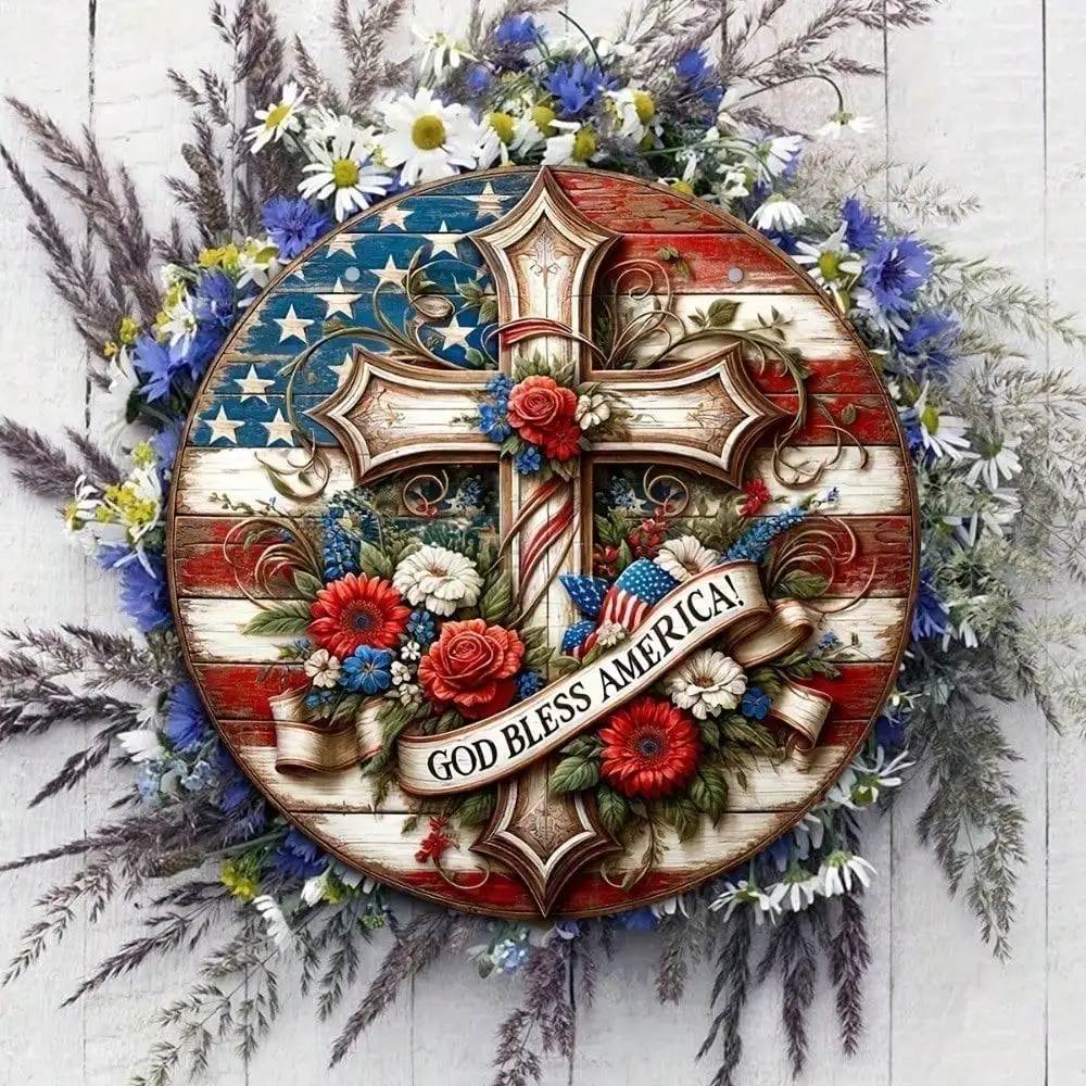 Patriotic Sign Rustic American Flag Wall Decor for Front Door Indoor Outdoor