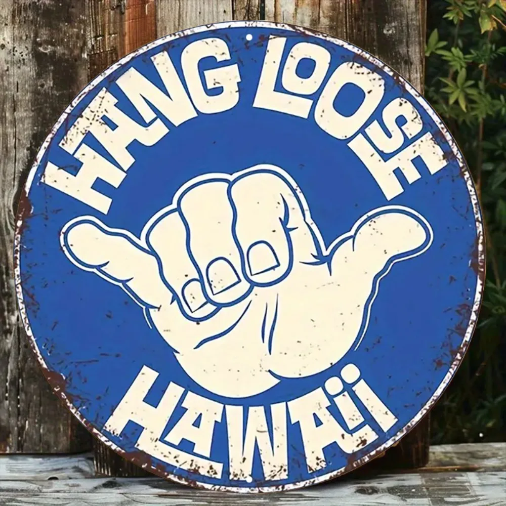 7.8" Vintage Hawaii Shaka Metal Wall Art Blue Red Beach House Decor Round Sign