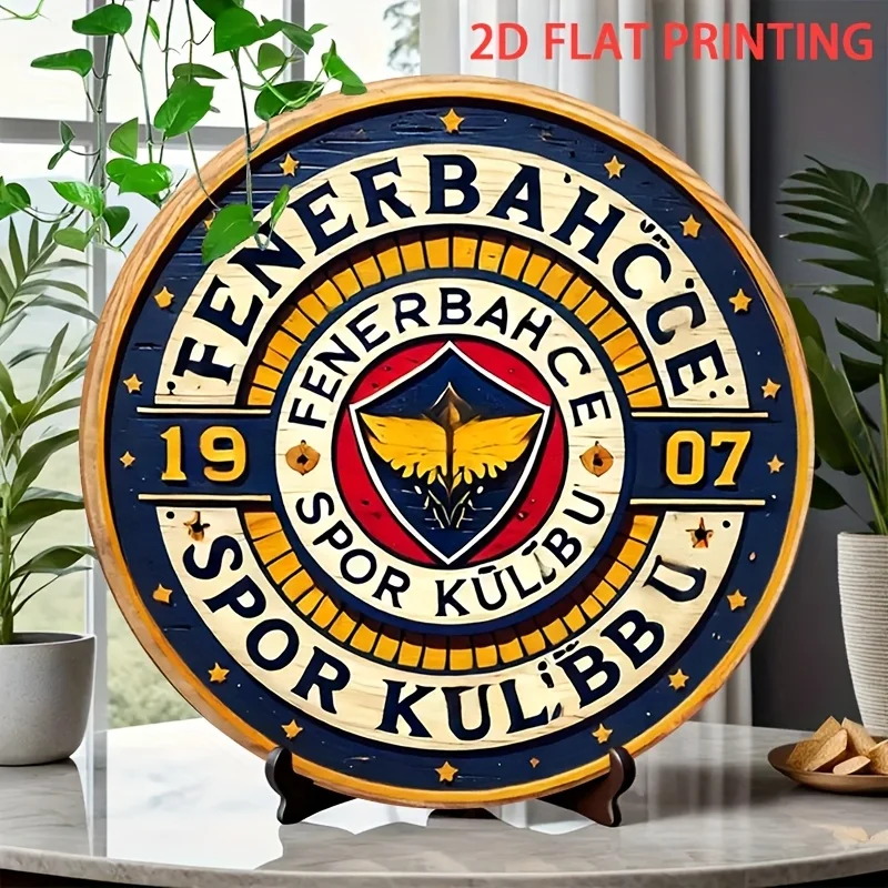 2D Flat, 1pc Fenerbahce Sports Club Logo Decorative Sign - 19.81 cm Round Iron Metal Wall Art, Vintage American Style Door Hangi