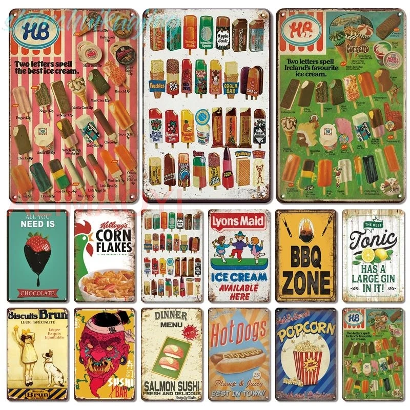 Antique Ice Cream Menu Metal Poster Tin Sign Vintage Restaurant Kitchen Plate Decor Metal Sign Retro BBQ Zone Yard Wall Stick