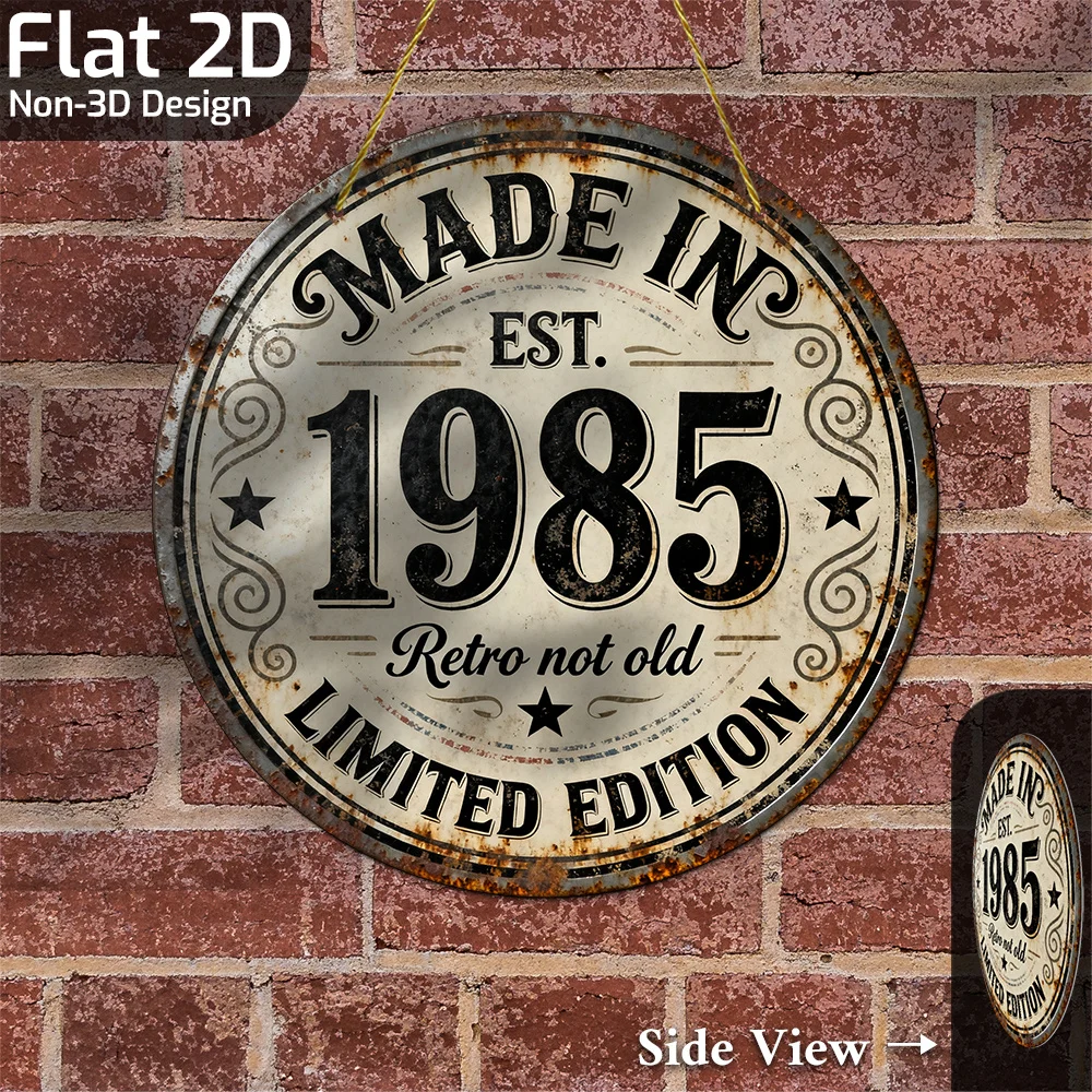 2D Flat, 1pc Vintage Metal Wall Decor Sign - 8"x8" Retro 1985 Limited Edition Aluminum Plaque with "Retro Not Old" Text, Framele