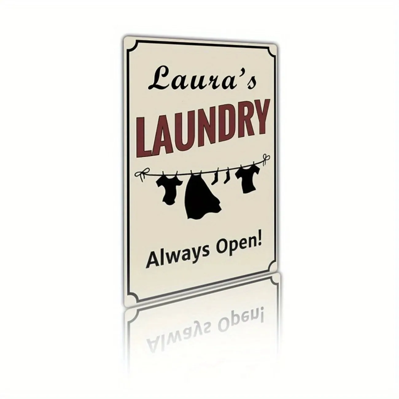 Custom Personalized Name Text Vintage Laundry Metal Wall Art Plaque, Home Laundry Decor Gift, Decoration Only