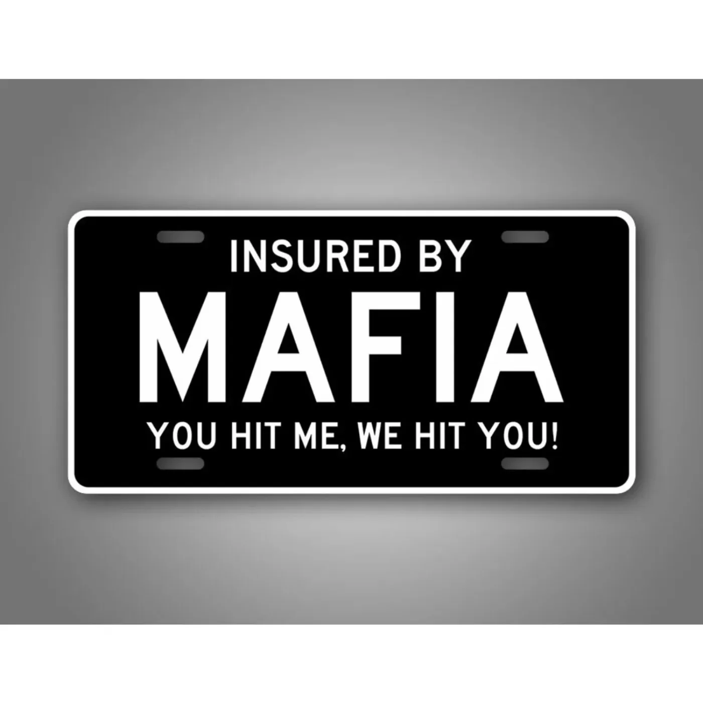 Personalized Funny Mafia "Insured By Mafia You Hit Me We Hit You!" Custom Text Decorative Tag (Only Decoration)