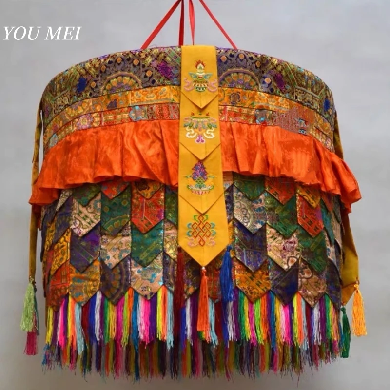 Tibetan-Style Eight Auspicious Patterned Umbrella,Buddhist Item Home Decor Diameter 60cm Embroidered Ribbon Colorful Tassels