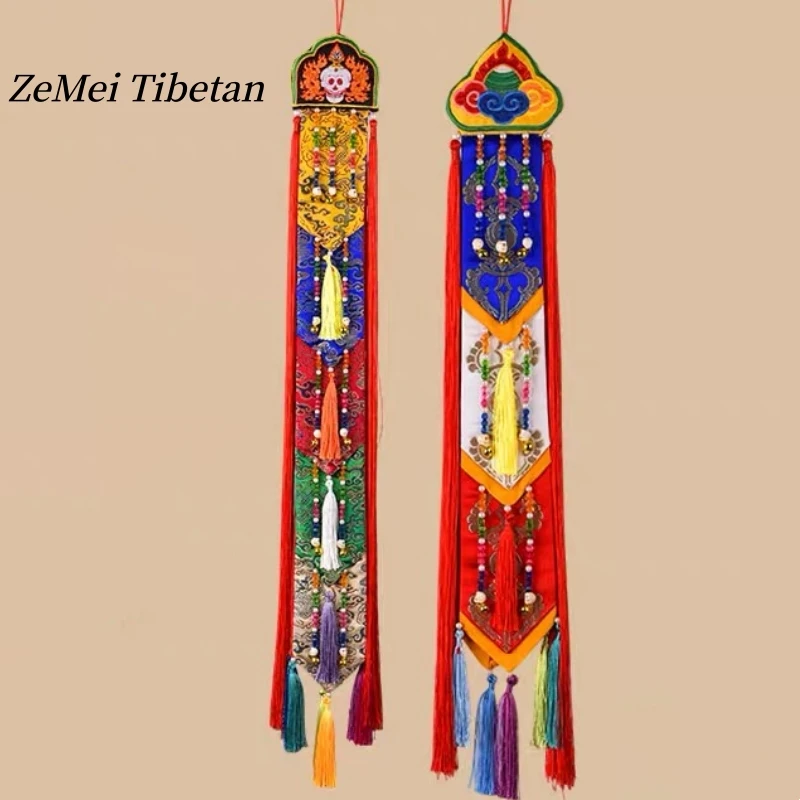 Tibetan Auspicious Curtain Flags,Colorful Embroidery Handicrafts,5 m Buddhist Hall Plain Floral Hanging Curtain Buddhist Item