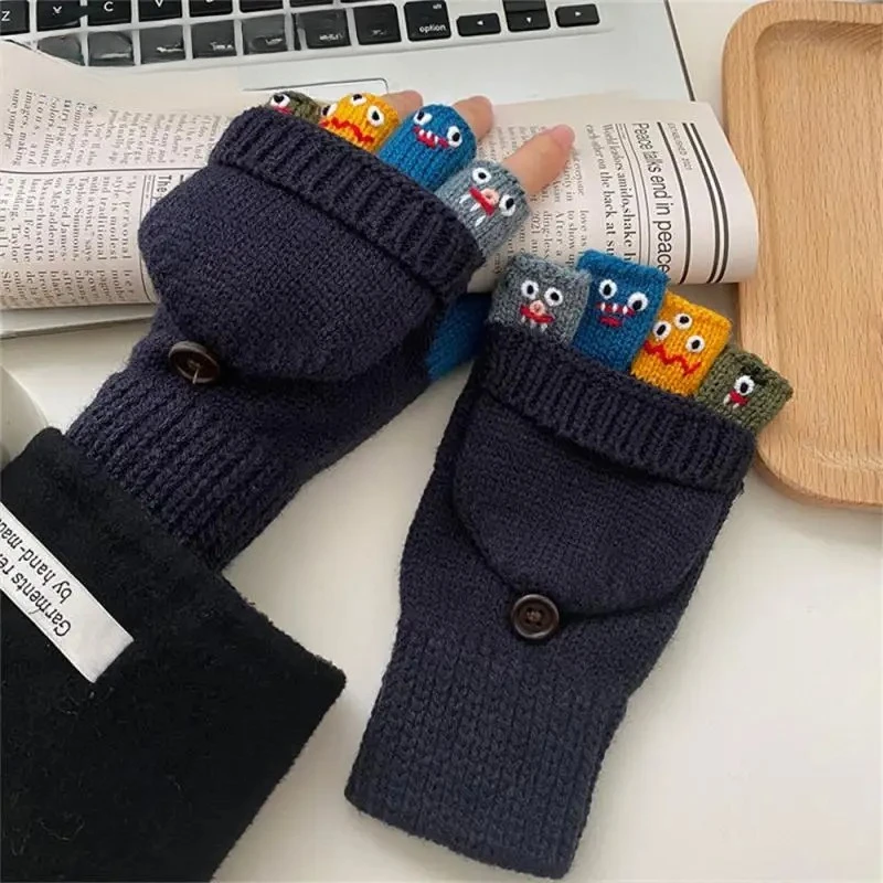 Flip-top Gloves Easy To Carry Gloves Comfortable Fit Comfortable Winter Accessories Woolen Funny Knitted