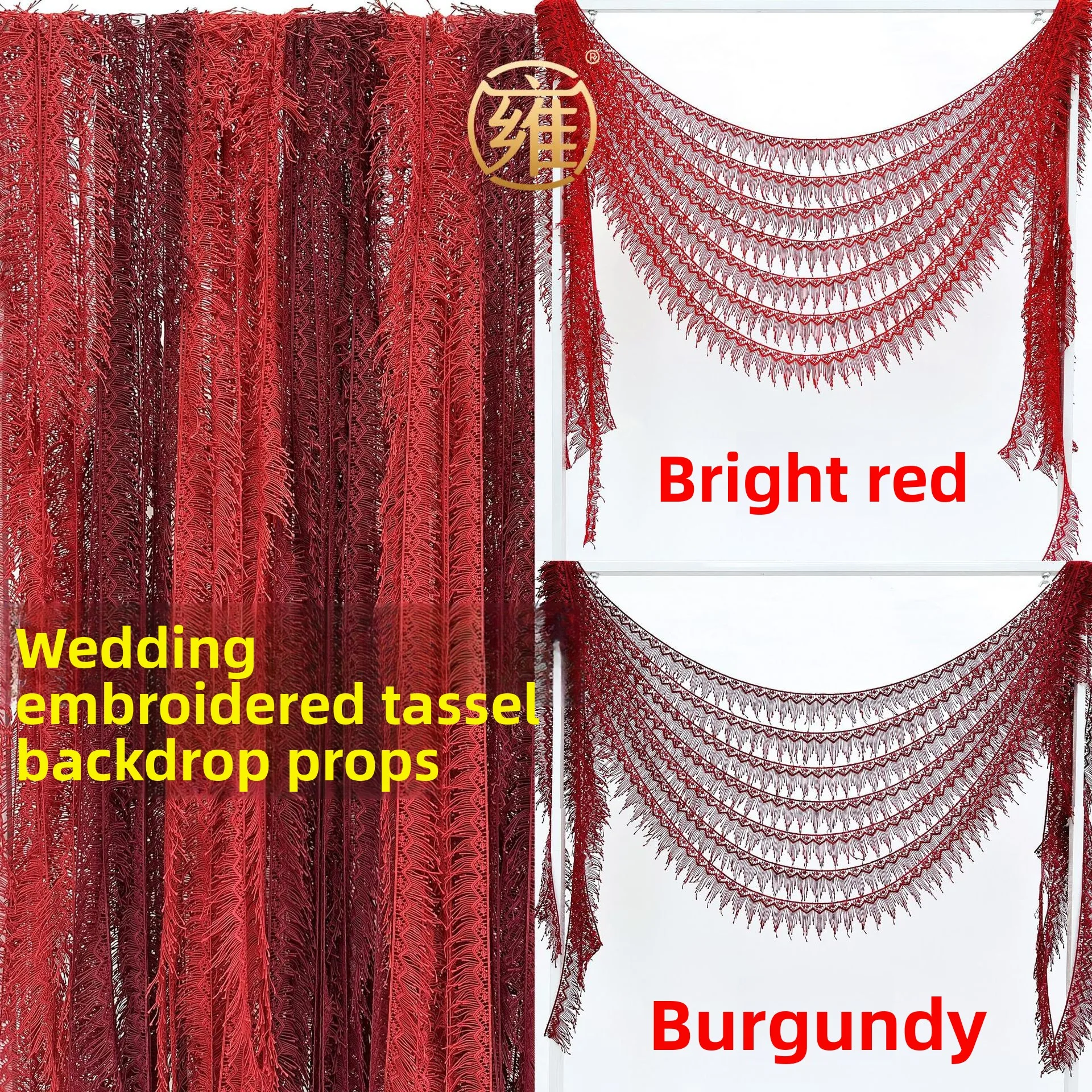 Wedding Celebration Tassel Baund Curtain Embroidered Lace Papyrus Rhinestone Stage Ceiling Decoration Curtain