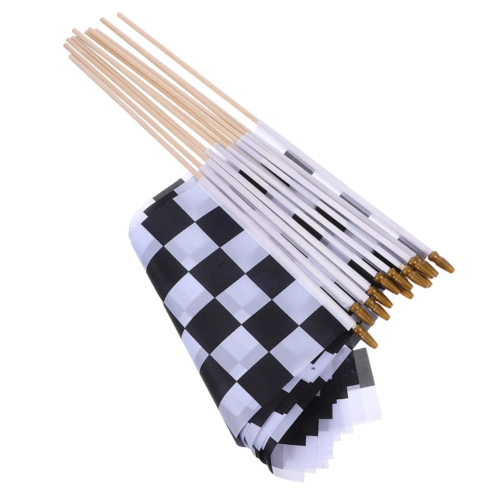 16Pcs Handheld Racing Flags Checkered Black White Mini Small Size Race Car Party Decorations Auto Racing Flags