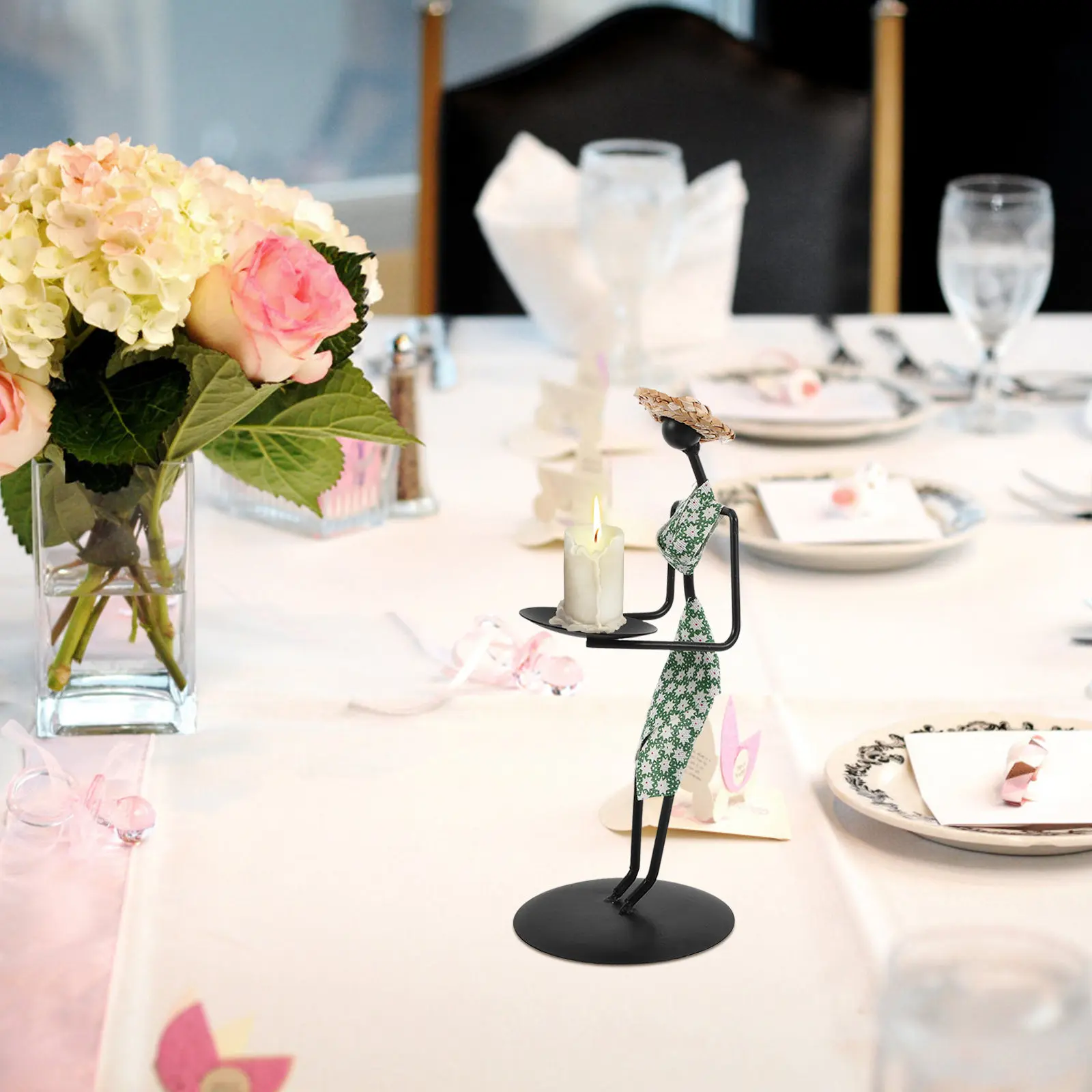 Pillar Candlestick Holder in Vintage Iron Finish African Inspired Statue for Emotional Bonding Candlelit Dinners