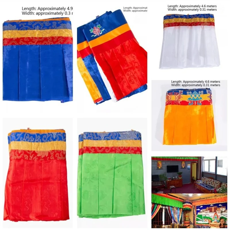 4.6m White/Yellow/Green/Five Colors Tibetan Style Curtain Home Indoor Wall Decoration Table Curtains Buddhist Temple Decoration