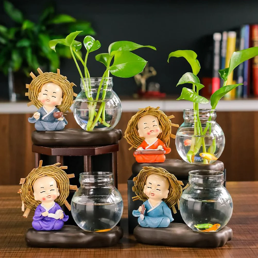 Buddha Garden Statue Fish Tank Decoration Mini Buddhism Figurine Desk Tablescape Decor Home Zen Statue Green Sandstone Thailand