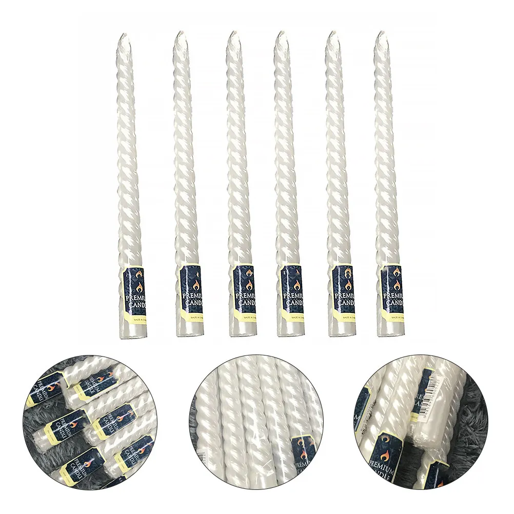 6pcs Paraffin Wax 25Cm Long Rod Pearl White Thread Design Smokeless Oil-Free Long Burning For Home Decor Wedding Party