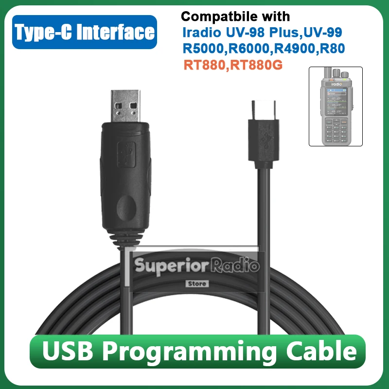 Iradio UV-98 Plus USB Programming Cable Type-C Interface RT-880 CH340 Chip For UV-99 R5000 R6000 R80 Two Way Radios Accessories
