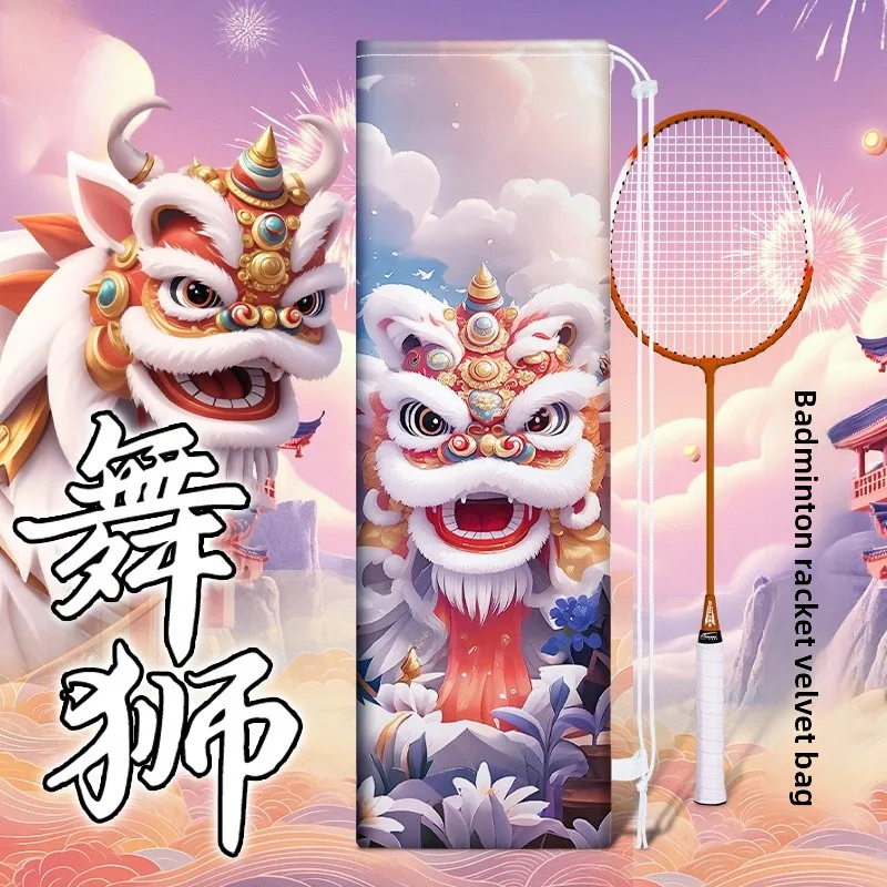 Portable Badminton Raet Bag Lion Wake Wind Velvet Cloth Storage Bag Single oulder Dstring Bag for Badminton Fans
