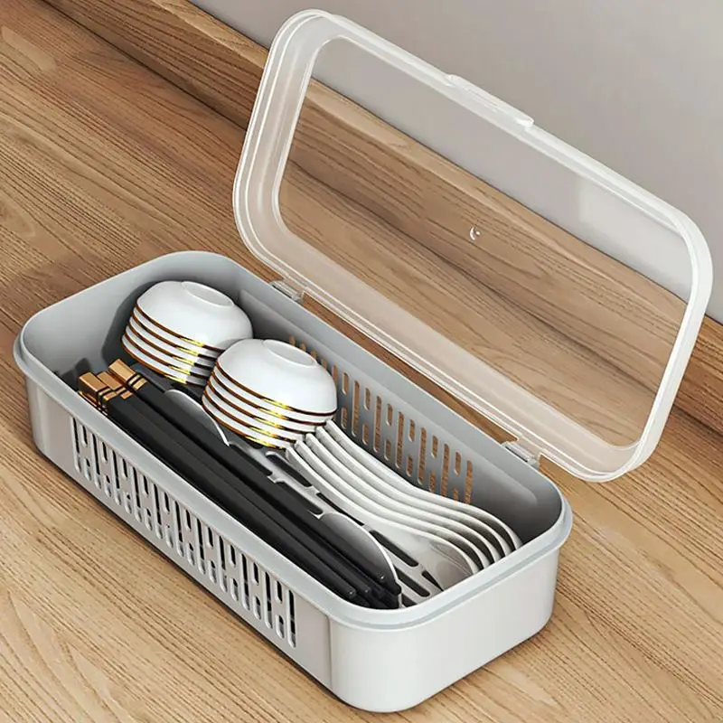 Kitchen Chopsticks Holder with Lid Soup Spoon Basket Dustproof Chopsticks Box Draining Tray for Utensils Storage Cartoon Shape