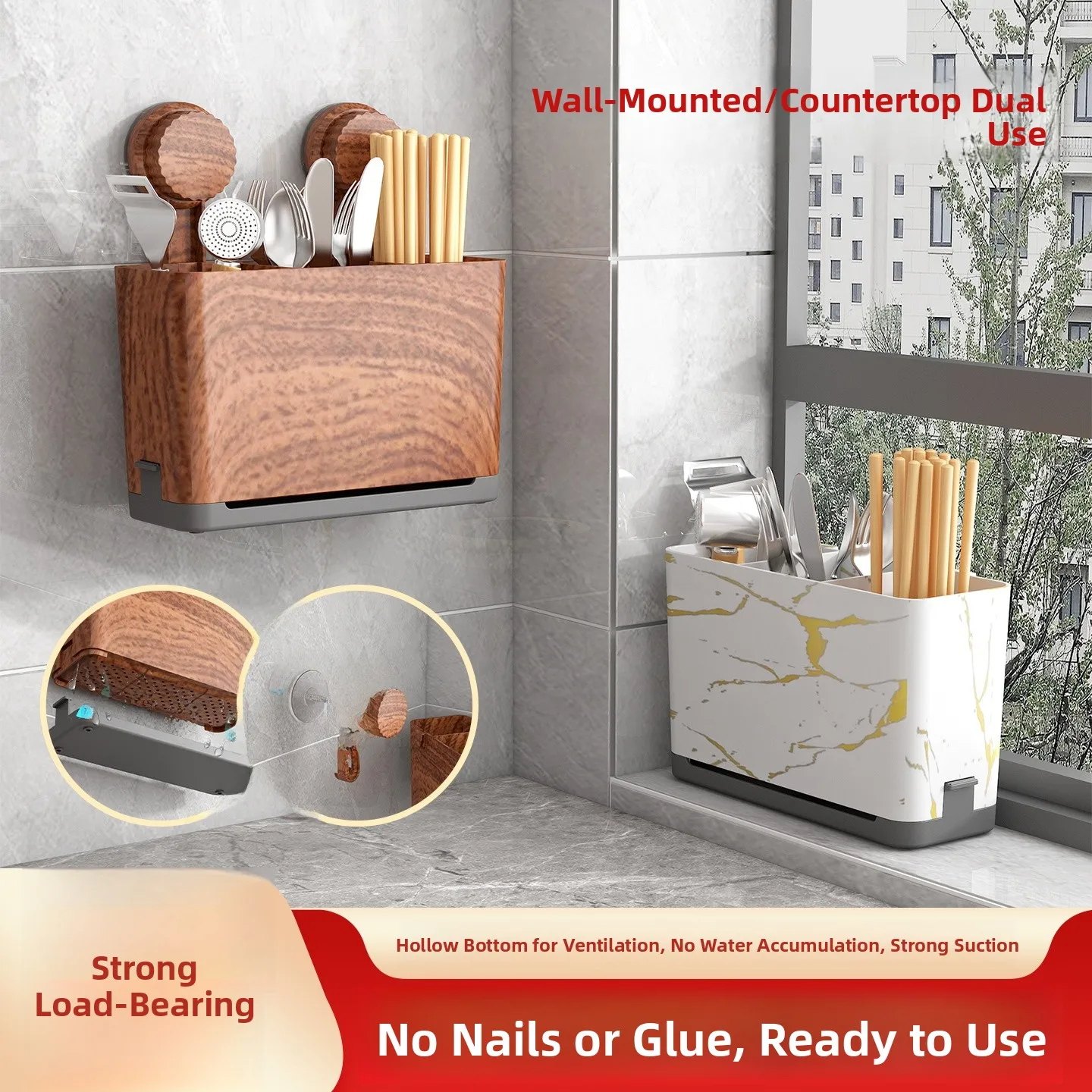 Large Capaci Wall-Mounted Kitchen Chopstis Spoon Storage Box Home Use No-Punching elf Multi-Functional Plastic Chopstic...