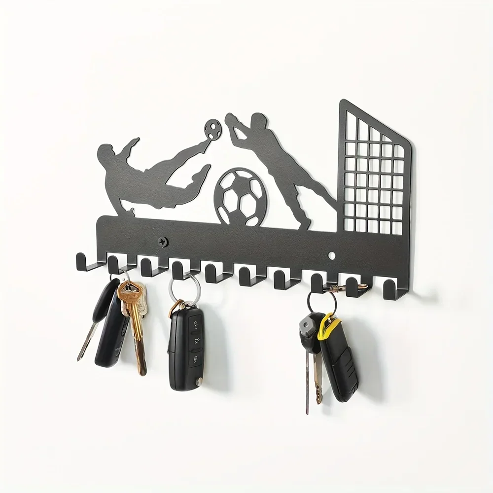 Metallic Basketball Silhouette Wall-Mounted Key Hook Traditional Style No-Drill Key Holder Coat Rack Sports Medals Storage