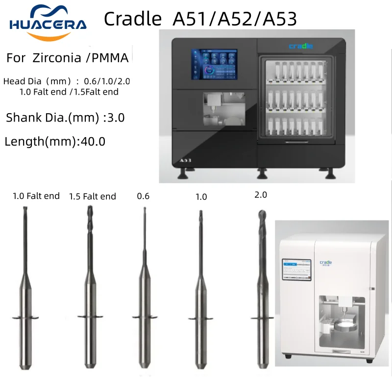 Cradle A51/A52/A53 Cutter Milling Burs For Grinding Zirconia PMMA Dental Lab CAD CAM Materials Milling Needles