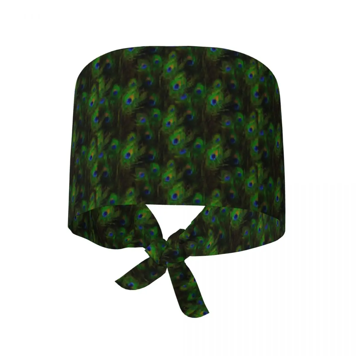 Peacock Feathers Scrub Hat Doctor Working Surgical Cap Unisex Adjustable Nursing Caps for Dentist
