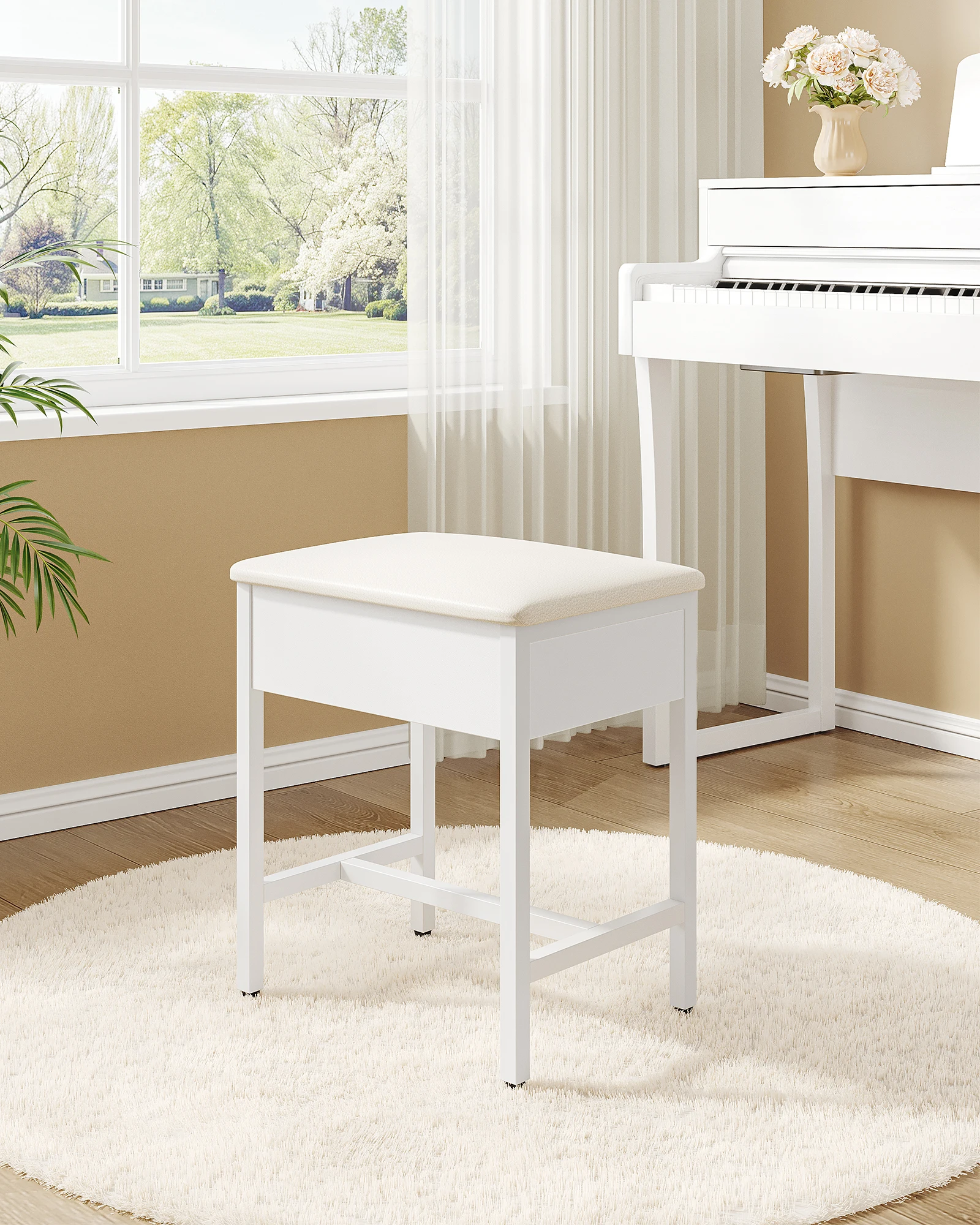 Vanity Stool, Living Room Footstool, Bedroom Bench, Padded Makeup Stool, Suitable for Dressing Room, Bedroom,Entrance Area,White