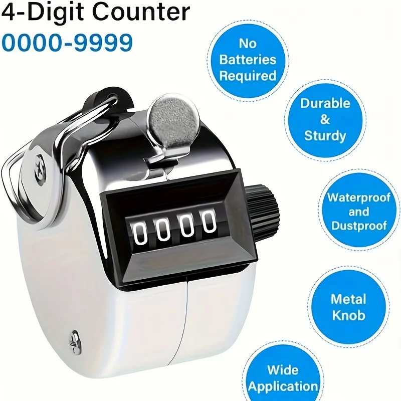 1 Piece of Iron Handheld 4-digit Digital Answer Counter, Non Rechargeable Metal Counter, Used for Counting and Coaching Tools