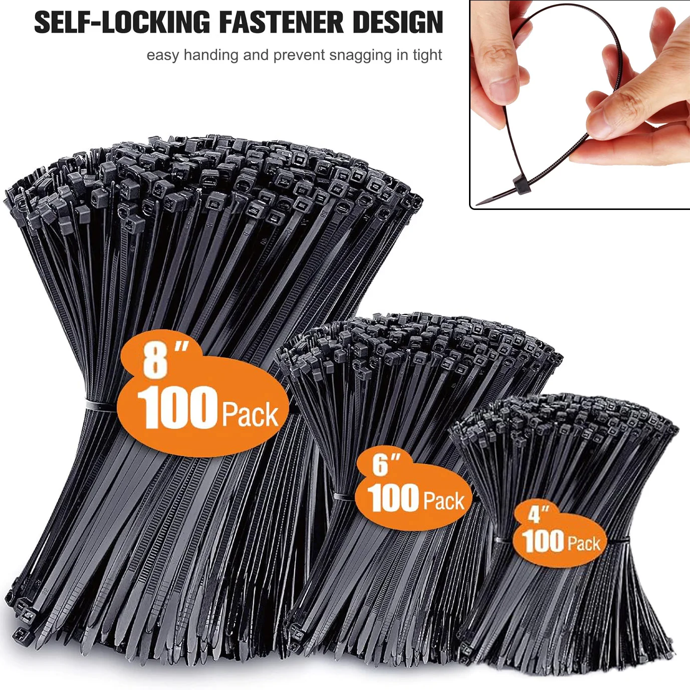 100 Pcs Cable Zip Tie Fastening Ring Zip Wraps Strap Tie Self-locking Plastic Nylon Tie Black Fastening Strap Cable-Tie-Set